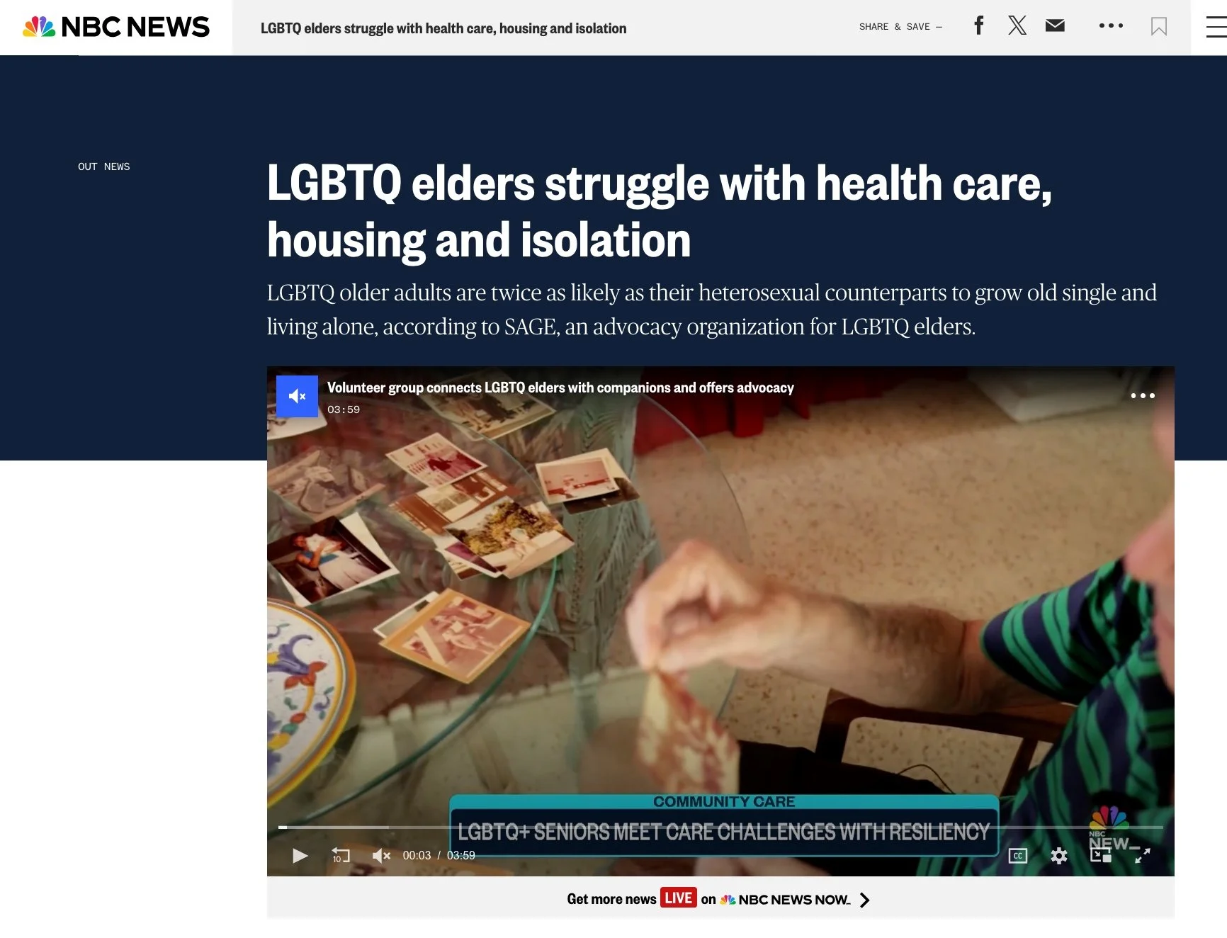 Nearly 60% of LGBTQ older adults report feeling a lack of companionship and over 50% reported feeling isolated from others, according to SAGE.